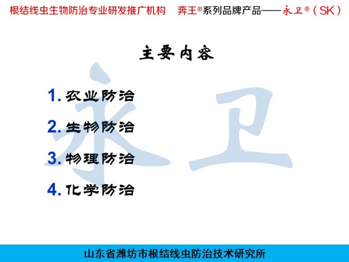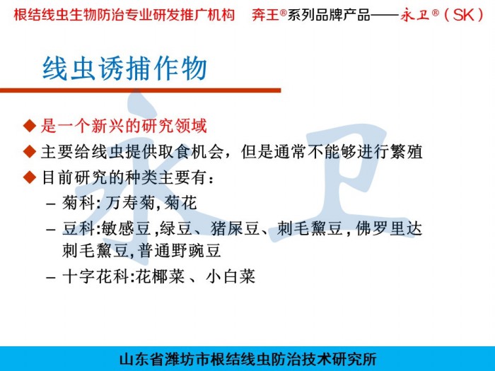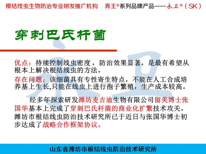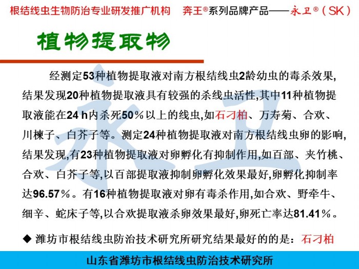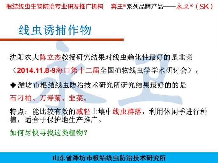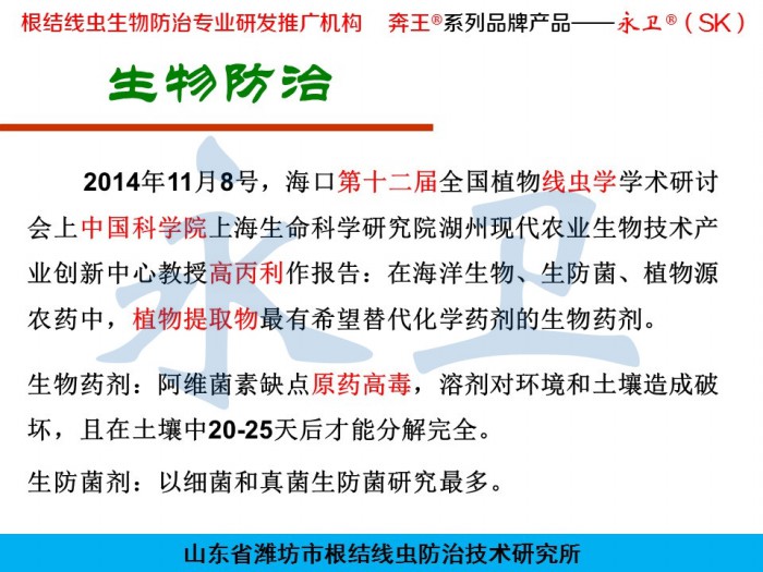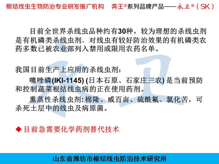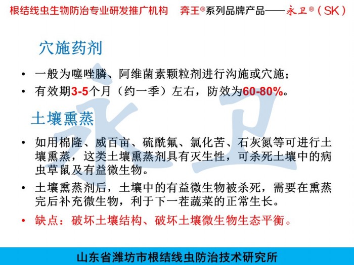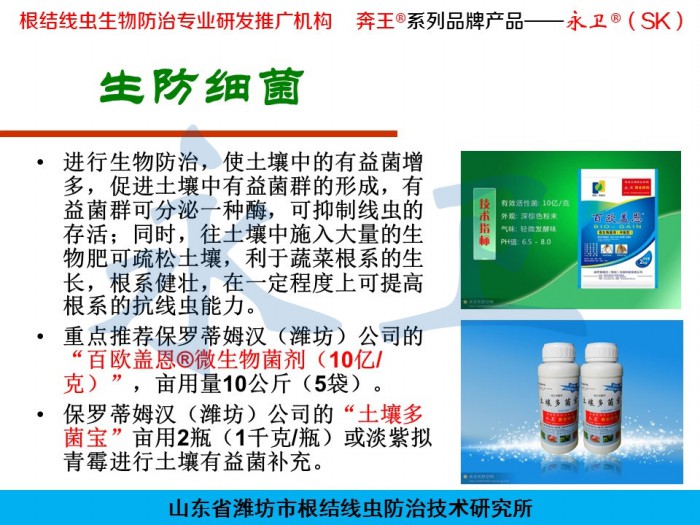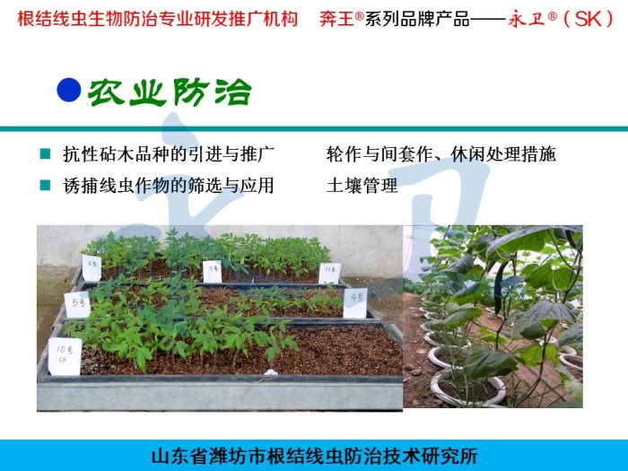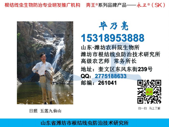 潍坊市永卫根结线虫防治技术研究所 地址:山东潍坊高新区生物医药产业园 电话/微信:15318953888 官微:gjxc1998 官网:http://www.gjxc1998.com