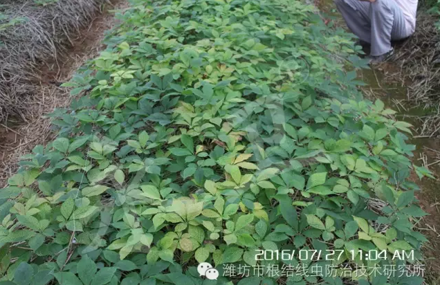 西洋参是多年生宿根性草本植物,在土壤中生长3年或更长的时间才能收获,因此,在西洋参的全部栽培过程中,清洁健康的土壤是西洋参正常生长发育的基础,需从播种前选地开始进行线虫的灭杀。
