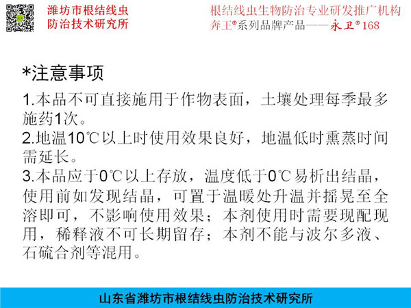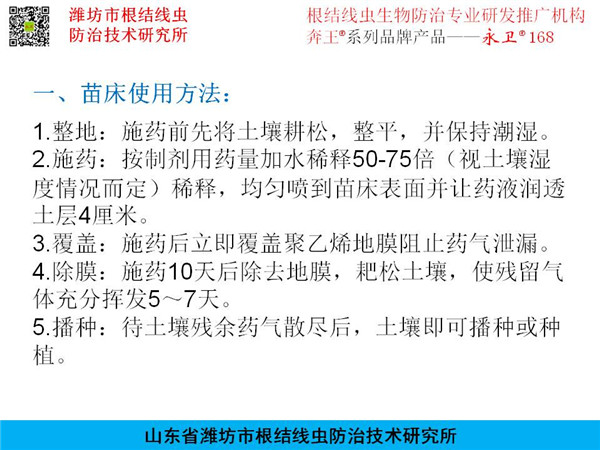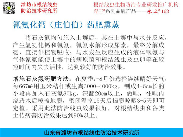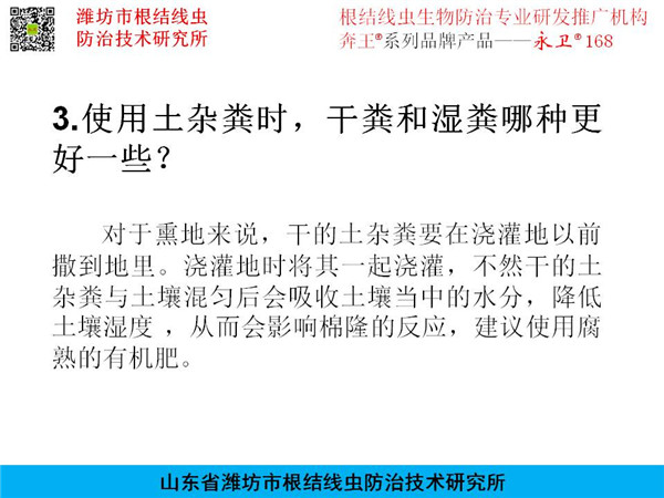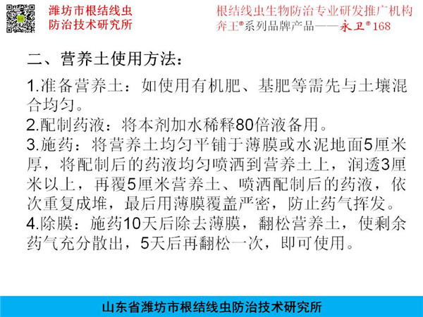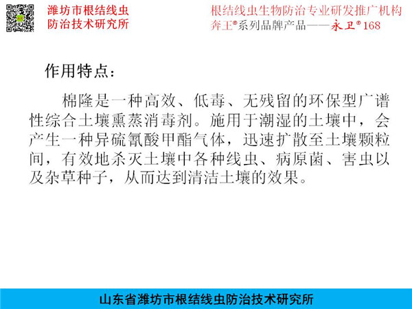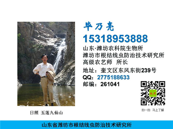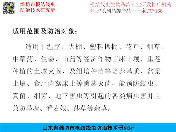 潍坊市永卫根结线虫防治技术研究所 地址:山东潍坊高新区生物医药产业园 电话/微信:15318953888 官微:gjxc1998 官网:http://www.gjxc1998.com