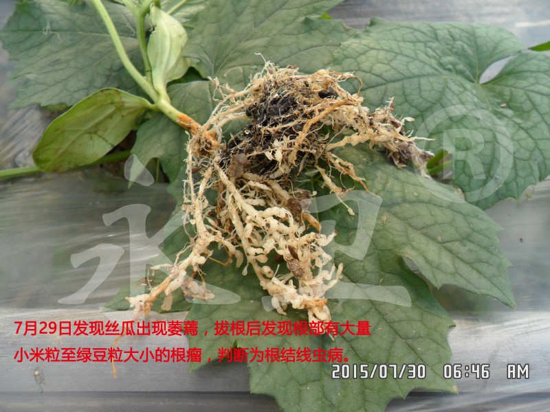 潍坊地区丝瓜根结线虫发生非常严重,很多农民因线虫难防治而非常头疼,有的甚至放弃丝瓜的治疗