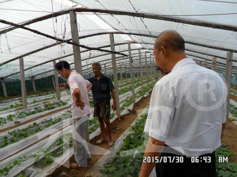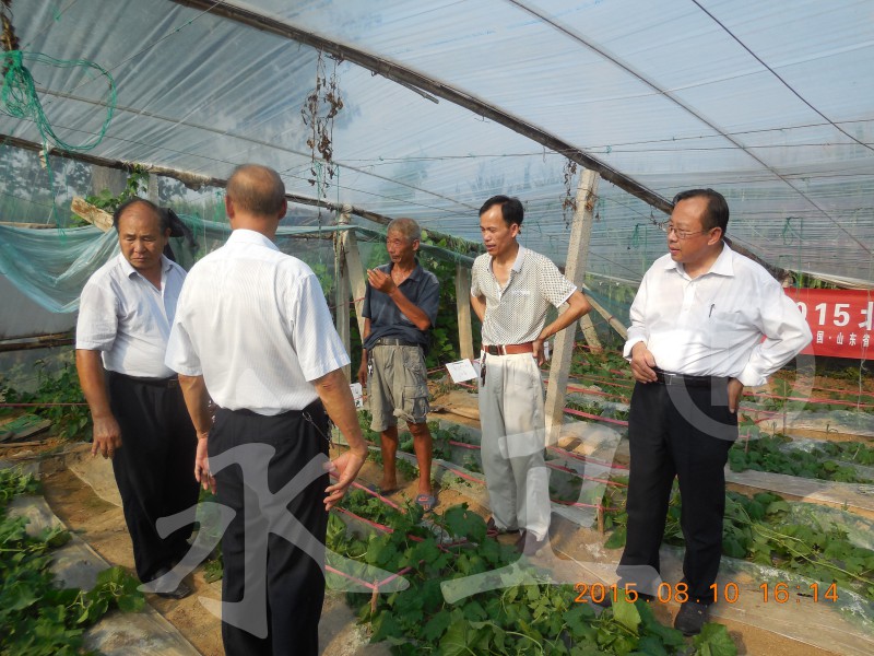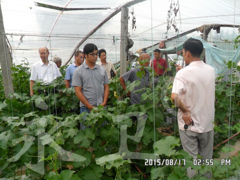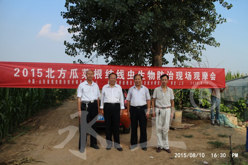 8月10日,潍坊市根结线虫防治技术研究所组织现场观摩会,到场的专家主要有本所所长毕乃亮(右一)、山东卫视农科频道高级农业顾问张传义研究员(右二)、潍坊市农科院线虫专家王炳太(右三)、寿光市著名蔬菜专家农业局高级农艺师张兴德(右四)等。