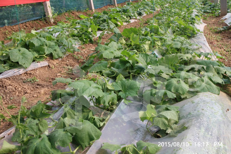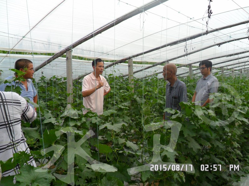 8月17日,潍坊市根结线虫防治技术研究所再次召开现场观摩会,所长毕乃亮邀请潍坊职业学院植保专业田洪霞博士(前排左一)、王承香博士(前排左二)、寿光市著名蔬菜专家农业局高级农艺师张兴德(后排左三)、潍坊市农科院线虫专家王炳太(后排左六)、潍坊职业学院植保专业副教授徐桂平(后排左五)、蔬菜专业教授任大文(后排左七)等众多专家及本所战略合作企业山东沂山现代农业发展有限公司技术部李文文(后排左四)、临朐多位瓜农、菜农参加了观摩会。观摩会期间,毕乃亮所长和张兴德老师详细介绍了“永卫®(SK)”治疗丝瓜根结线虫的整个过程,并向到场专家、技术人员及前来参观的农民讲解了“永卫®(SK)”的使用方法及注意事项。棚主韩家右对“永卫®(SK)”治疗丝瓜根结线虫病效果非常满意,向到场的技术人员及农民强烈推荐该产品。