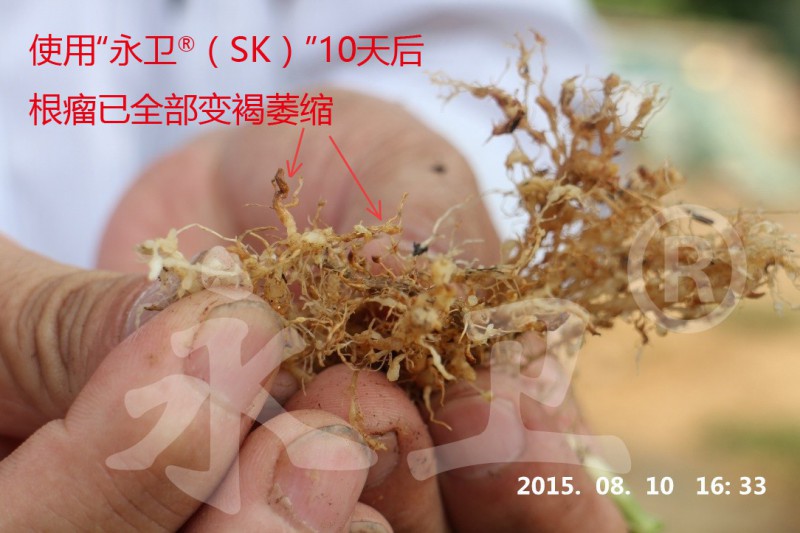 根结线虫植物源杀灭剂“永卫(SK)”上市以来受到广大种植户一致好评,防治效果远远高于市面上其它线虫防治药剂,并克服植物源农药见效慢、防效不稳定等缺点,彻底改变植物源农药在广大种植户心中的地位!
