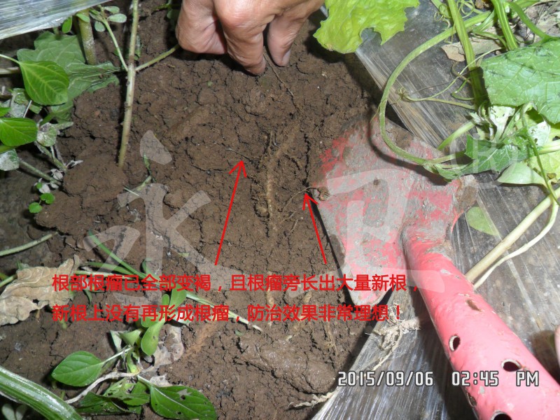 6. 示范推广最好从苗期开始用药,瓜菜根瘤太大不宜做药效示范。