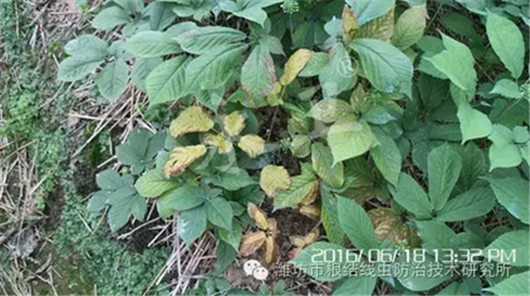 在田间发现病株或发病区要及时进行彻底的灭线处理,并对中心病区周围2-3平方米全面灌根处理,控制蔓延。