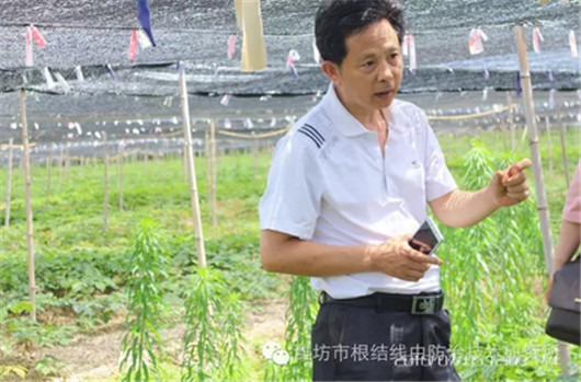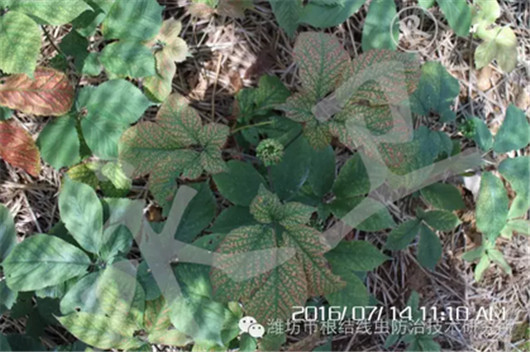 2016年7月5日,潍坊市根结线虫防治技术研究所组织专家到王总的爱东西洋参专业合作社查看用药效果。