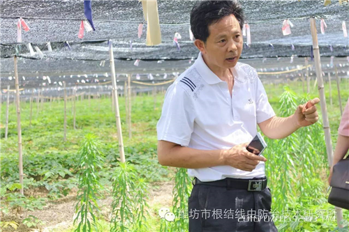 6月22日,所长毕乃亮一行再次来到王总的西洋参基地,向农技师张华彬详细介绍了我所在线虫方面多年的研究成果以及目前在潍坊瓜菜线虫重灾区推荐使用“永卫®168”后在黄瓜、丝瓜、甜瓜等作物上的突出防治效果。农技师张华彬表示将马上安排“永卫®168”的喷施,并一定会严格按照我所给出的治疗方案科学合理用药。6月23日,农技师张华彬安排工人首先在发病严重的3年生西洋参上开始用药。