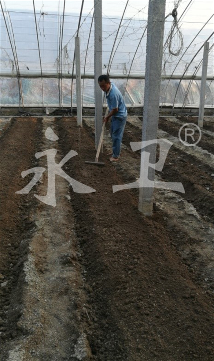 2018年9月11日,定植前三天,西部一亩地用6袋“永卫®KD” KD颗粒,用土搅拌均匀,均匀撒施,然后整畦(闷棚后被大水冲了加上棚西部线虫严重用颗粒重点处理)。