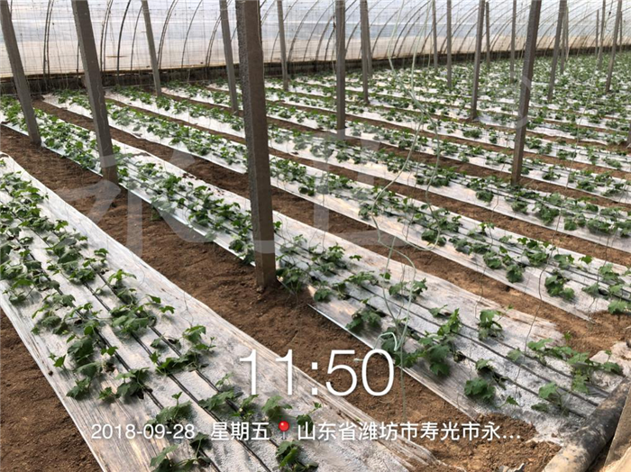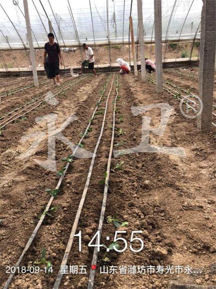 2018年9月14 日下午2点半定植,下午定植结束后,东部一亩地用6公斤“永卫® AA” 水剂第一次滴灌(闷棚后被大水冲了,相当于未闷,首次用药加大用量)。