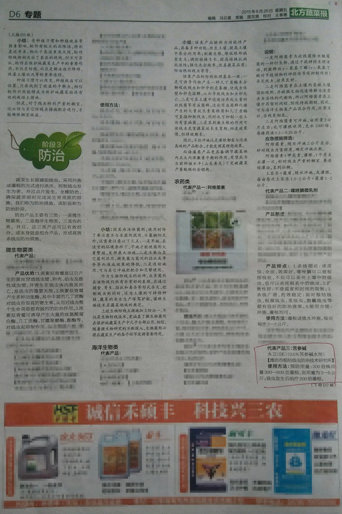 图一:《北方蔬菜报》在第432期32板C报道“永卫®(SK)”防治根结线虫方法