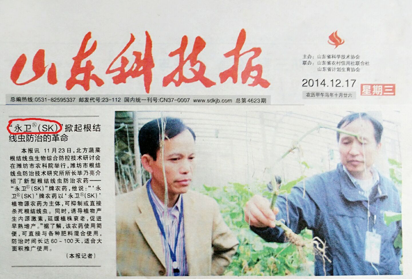 《山东科技报》评论“以永卫(SK)为主导的根结线虫生物防治技术将会掀起根结线虫防治的革命。”