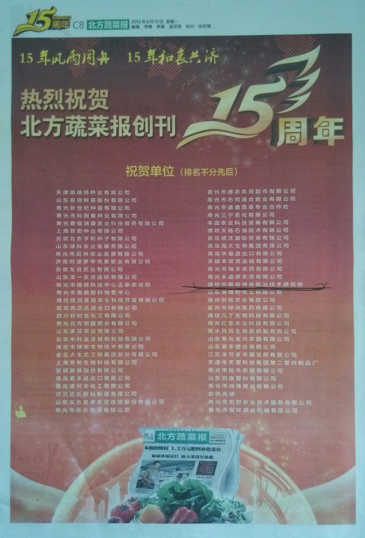 图一:潍坊市根结线虫防治技术研究所热烈祝贺《北方蔬菜报》创刊15周年