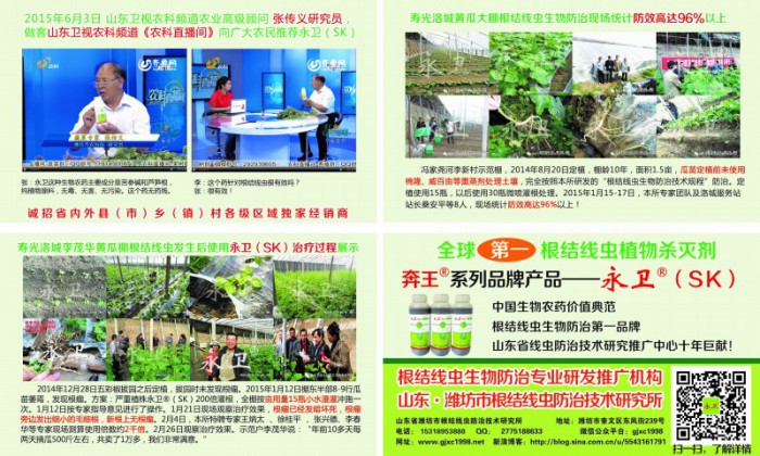 2015年6月3日,山东卫视农科频道农业高级顾问张传义研究员做客《农科直播间》,向广大农民推荐“永卫(SK)”,节目中介绍该药剂“纯植物原料,无毒、无害、无污染”,“这个药无残留,很有效!”