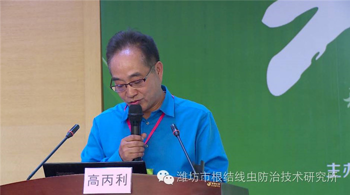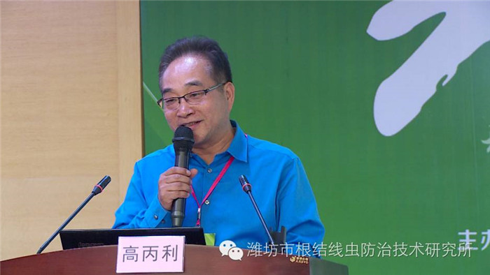 中国植物线虫专业委员会主任委员、中国农科院植物保护研究所彭德良教授给会议发来贺言:我谨代表中国植物线虫专业委员会和我本人衷心的感谢潍坊根结线虫研究所的辛苦工作促成了本次中国北方(寿光)蔬菜根结线虫绿色防控新技术论坛的成功举办,这样的专题论坛十分有意义,是我国植物线虫防治工作的一个新的方法,更接地气。我代表专业委员会为潍坊市根结线虫防治技术研究所对本次大会的辛苦劳动表示衷心地感谢,这样的一个新方法,希望能有更多的同仁投身到蔬菜线虫防治的工作中,有更多好的产品走向市场,也邀请大家参加今年8月10号到13号在云南昆明召开的全国植物线虫会议,谢谢大家!贺言由高丙利老师在论坛上当众宣读。