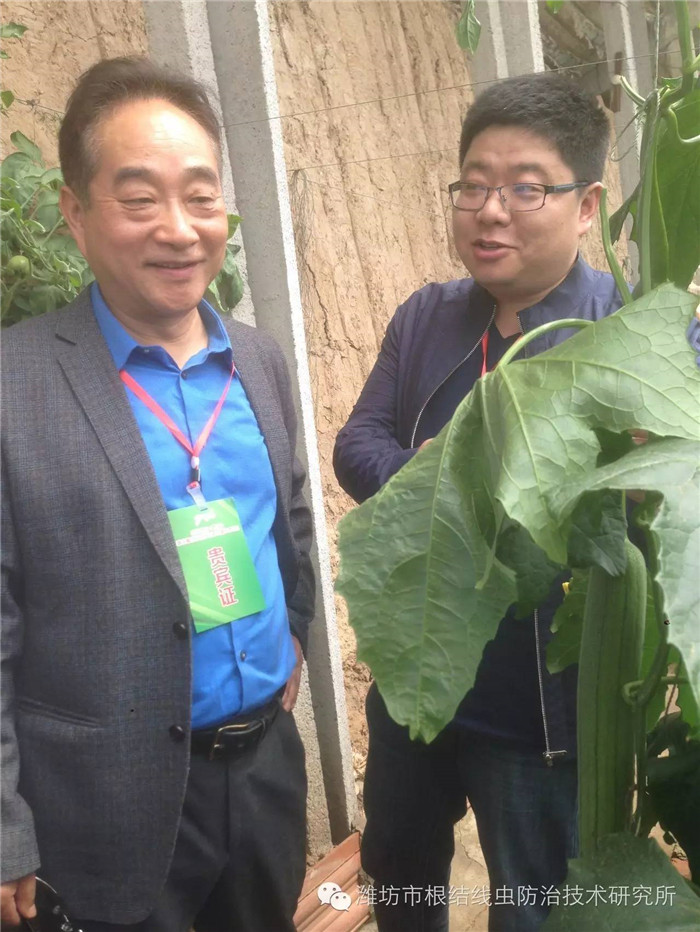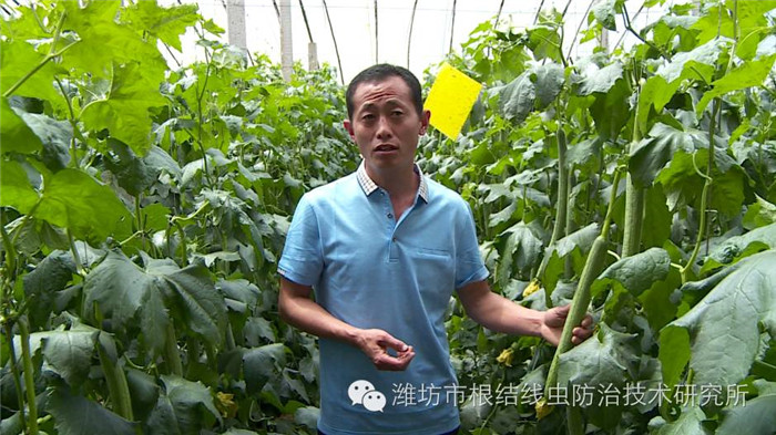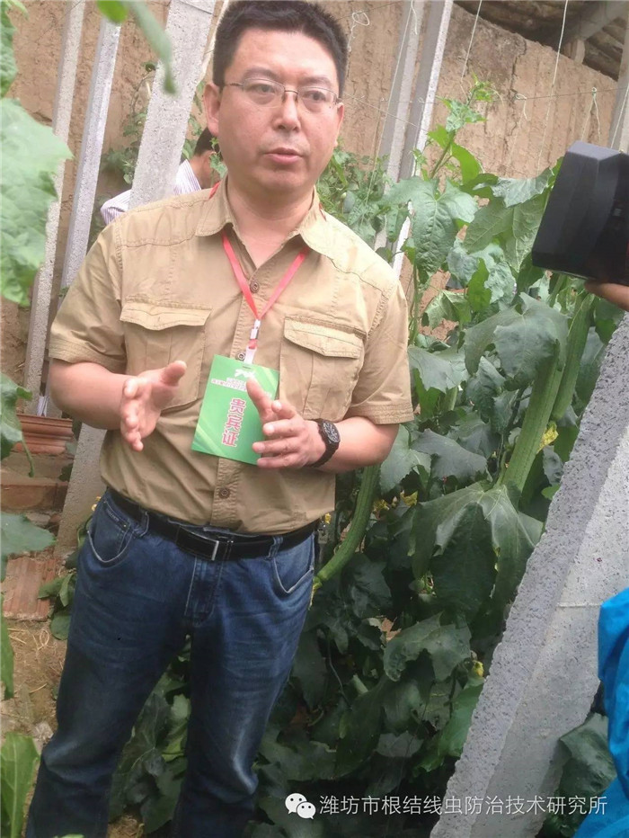 孙记者问:根结线虫很难防吗?为什么好多人都在研究这个?高老师说:根结线虫实际上也把它称为植物病害中的一种癌症,很难治!在西方也是非常重要的一种病虫害,我们国际上的很多农业大公司都是有专门的线虫组来研究怎样防治根结线虫。传统的化学农药,比如熏蒸剂溴甲烷(对环境)影响都是非常大的,在全球基本上都已经禁止使用了。目前来讲,在新的化合物出来之前市场有个空白,所以很多公司在研究一些低毒的化药,但总体来讲,化药是化学合成的,在自然界中是不存在的,人体一接触往往是有毒的,但微生物或者植物源农药是我们自然界已经有的成份,人类和这样的生物已经协同进化了上亿年,这些东西对我们人体来讲是没有害处的。生物农药是我们绿色防控中最关键的一个技术措施,特别是像寿光这种集约化种植的,生物农药的使用目前和将来都起到一个很重要的作用。像这个丝瓜,去年8月份种植的,到现在都10个月了,它还在不停的生长,农业科技的进步是可见的,也完全离不开生物农药可以持续性的防治并提供营养,还可以增加植物的免疫力,它的作用是非常多的。化学药剂往往只是把病或虫杀死,但生物农药就像我们吃保健品一样,可以诱导植物的抗性,还可以分泌一些植物的激素,来刺激植物生长、高产,同时还可以对土壤的改良起到关键的作用。作物的生长,土壤是基础,土壤改良好了,用生物药后用药量会慢慢减少是可持续性发展的,可减少农药化肥用量,对土壤整个生态环境的改善是非常好的,所以用生物农药,不只是有现实意义还有长远的生态意义。在国家层面,我们的习主席也是大力的提倡绿色环保、生态社会的建设,山东特别是寿光是我们国家非常重要的蔬菜生产基地,对食品安全,不光对山东省有影响也影响到全国,所以把寿光的生物农药绿色防控技术做好,对咱们国家的农业带动意义也是非常大的。把寿光的根结线虫能做好的话,在全球都是非常有代表性的。