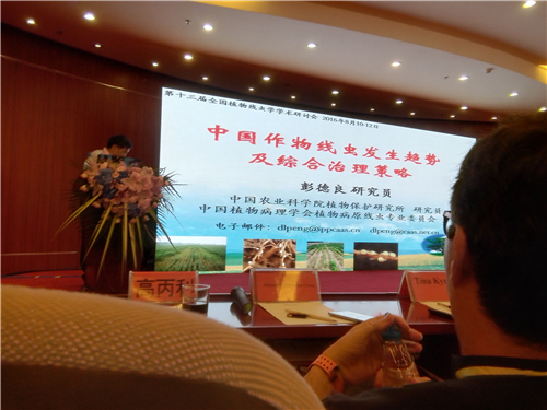 中国农业科学院植物保护研究所研究员彭德良老师在大会上介绍了“中国作物线虫发生趋势及综合治理策略”,提倡从多个方面实施策略,多策并举防治线虫。