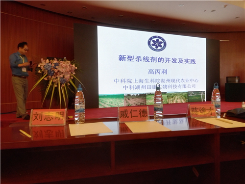 美籍华人、国际著名线虫专家中科院湖州现代农业中心首席科学家、常务副主任高丙利博士在会议上作了题为“新型杀线剂的开发及实践”的大会报告。