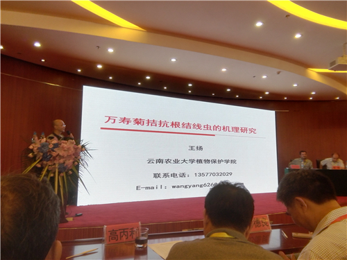 云南农业大学植物保护学院王扬教授作了题为“万寿菊拮抗根结线虫的机理研究”的大会报告。