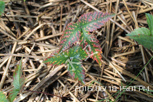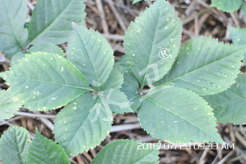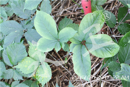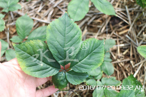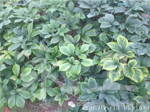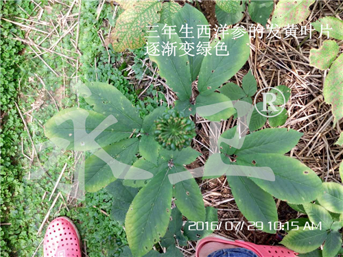 在三年生的西洋参上,我们观察到西洋参叶片从叶脉开始首先恢复绿色,由线虫病引起的叶片上的水锈-红色斑点也正在慢慢消失。