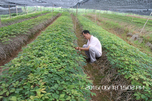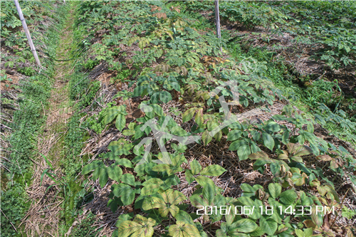 2016年7月29日,距离王总的西洋参基地使用“永卫®168”防治西洋参线虫已经35天了。潍坊市根结线虫研究所一行在所长毕乃亮带领下再次来到威海文登葛家镇王总的西洋参种植基地,现场查看使用以“永卫®168”为主体的生物技术防治西洋参线虫的后续成果。