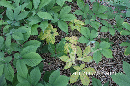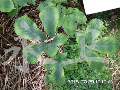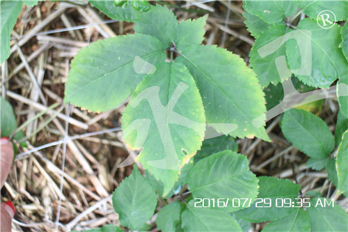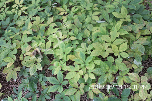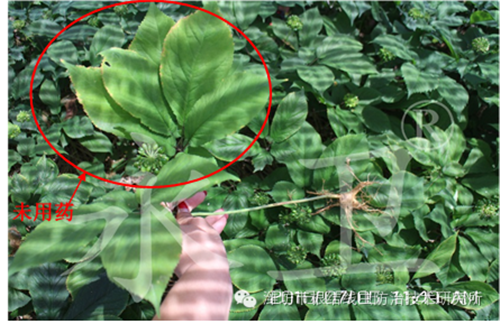 二年生西洋参使用“永卫®168”灌根35天后,发黄叶片变为绿色,颜色浓绿。