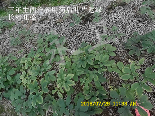 基地负责人王焕模介绍说,“西洋参自从用了“永卫®168”,过了12天后就已经开始明显的生长,到现在21天了,苗床上的西洋参越长越大,长势旺盛,叶子很绿”。