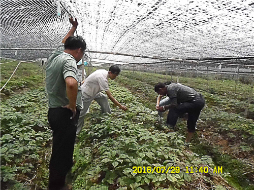 2016年7月14日,本所专家一行在所长毕乃亮带领下再次来到威海文登葛家镇王总的西洋参种植基地,现场查看使用以“永卫®168”为主体的生物技术防治西洋参线虫的后续成果。