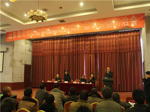 2017年2月7日,应“山东鲁天化肥业有限公司”邀请,潍坊市根结线虫防治技术研究所所长毕乃亮一行赶赴山东省菏泽定陶县出席了由鲁天化肥业有限公司主办的“山东鲁天化肥业第四届山药高产暨病虫害防治会”。山东鲁天化肥业有限公司总经理杨统清、南京农业大学特聘教授国家级农技推广研究员高级农艺师孙启善、孙亚玲、菏泽定陶山药栽培专家张胜骞等专家出席了本次会议。 会议开始前,所长毕乃亮与孙启善老师、孙亚玲老师就山药线虫防治问题进行了交流讨论。 会议开始 会议一开始,首先由孙启善老师介绍了山药的高产栽培技术以及主要病虫害防治问题。 随后,本所所长毕乃亮为到场参会者讲解了山药线虫基础知识及山药线虫防治的多方面措施:农业措施、物理防治、微生物防治、生物药剂防治(“永卫®168”)。 毕乃亮所长表示:山药根结线虫为害主要发生在地下块茎部位,地上部一般没有明显的症状;发病严重者,地上部表现叶色淡、生长弱、植株繁茂性差。最明显的表现就是块茎的表皮上产生许多大小不等的近似馒头形的瘤状物。 土质、土壤的理化性状、连年耕作、大田耕作层中线虫基数等多个方面的原因均会导致山药被线虫严重危害。 因为线虫为害严重影响山药的产量,所以线虫是种植户们首要防治的虫害。山药的地下块茎部分是食用部位,在土壤中与块茎接触的药剂就必须慎重选择,纯生物线虫杀灭剂“永卫®168”是一款植物提取药剂,高效(防效95%)低毒并且没有残留,安全无味,科技含量高,达到有机蔬菜生产标准。 根据山药本身的种植特点,山药线虫防治要从种植前入手。通过精选种薯、蘸嘴子、处理土壤等多个措施防治线虫,“防线虫于侵染之前,治线虫于定植之初”,以防为主,防控结合,合理应用综合防控措施,争取达到最佳防治效果。 菏泽定陶山药栽培专家张胜骞根据自己多年来总结的经验,为大家介绍了山药生长周期中的地下块茎膨大规律,就施肥用量、施肥时间、施肥方式等多个问题进行了描述,总结了高产高效栽培方法与大家分享。 会议结束