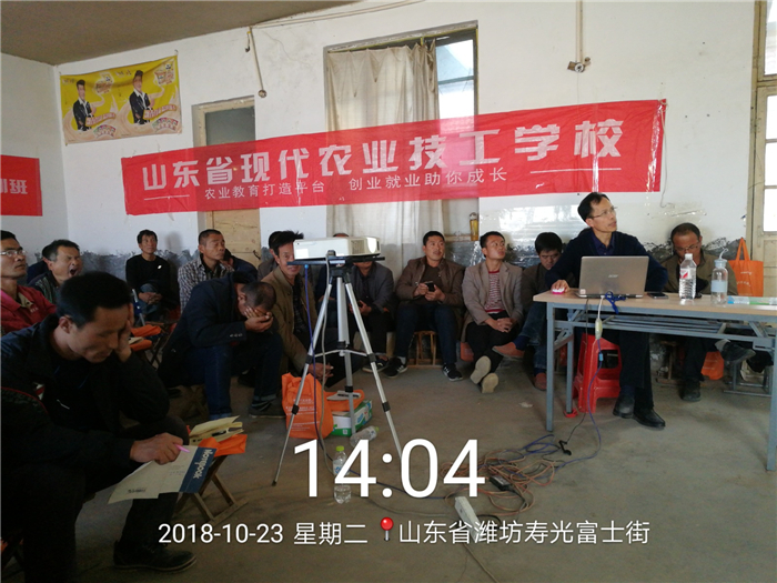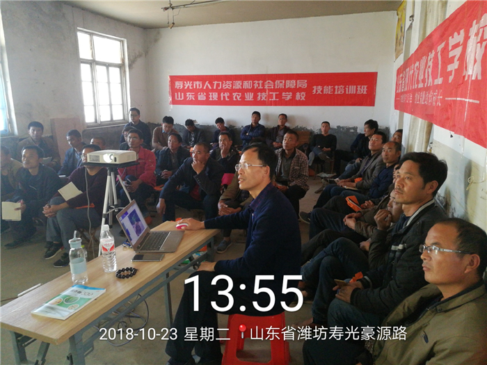 2018年10月23日,由寿光市人力资源和社会保障局与山东省现代农业技工学校共同举办的“千人技能培训班”在寿光市举行。潍坊市根结线虫防治技术研究所所长、高级农艺师毕乃亮,率团分别到寿光市孙家集街道、洛城街道薛家庙子村,现场为农民讲解了线虫的基础知识、国内外线虫发生与防治现状及先进的防治方法、研究所线虫生态综合防控技术方案及综合防控所取得的成果。